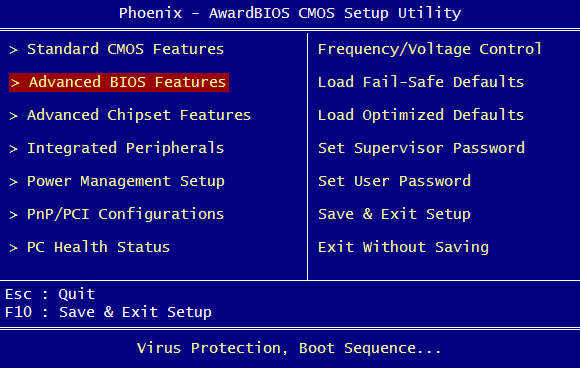 با دکمه های Arrow Key قسمت Advanced Bios Features را انتخاب کنید.