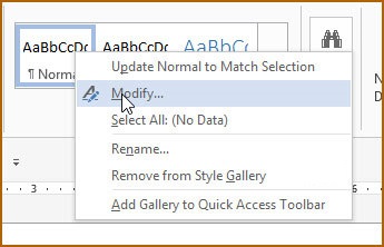 1. هنگامی که یک سند جدید در Word ایجاد کردید بروی زبانه Home رفته و سپس در قسمت Styles بر روی Normal راست کلیک کرده و از منوی باز شده گزینه ی Modify را انتخاب کنید.