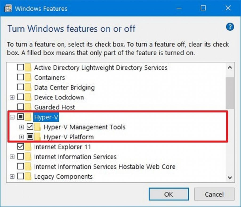 نکته: اگر از نسخه Home ویندوز 10 استفاده میکنید، میتوانید از نرمافزارهایی مانند VirtualBox یا VMware استفاده کنید.