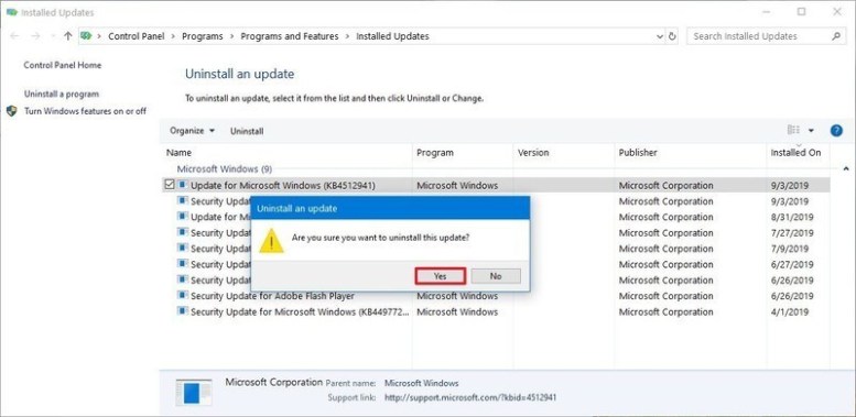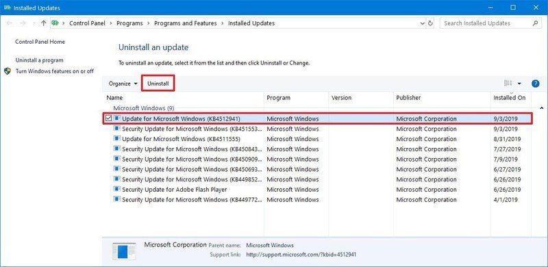 برای حذف به روزرسانی KB4512941 از ویندوز 10، از این مراحل پیروی کنید: