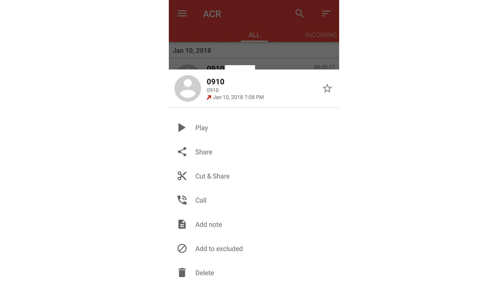 بعد از هر مکالمه، لیست تماسهای ضبط شده در صفحه اصلی برنامه نمایش داده میشود. با انتخاب هر شماره، گزینههایی مانند پخش، اشتراکگذاری، بریدن بخشی از مکالمه و حذف در دسترس شما خواهد بود. این امکانات از ویژگیهای برجسته برنامه ACR Phone است.