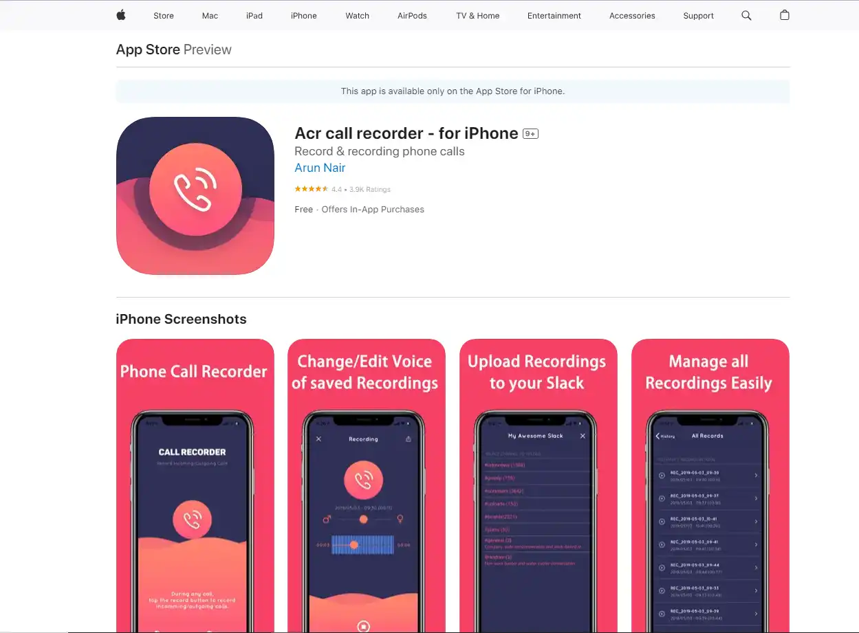 نسخه iOS برنامه ACR Phone نیز برای کاربران آیفون در دسترس است و همان قابلیتهای ضبط مکالمات دوطرفه را ارائه میدهد.