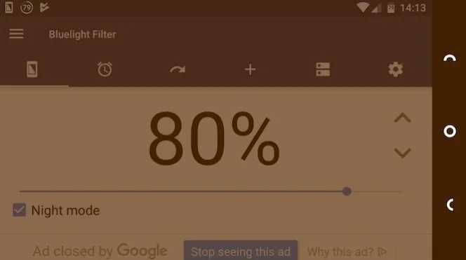 ویژگی نور شب در اندروید و برنامه‌هایی مانند Twilight به شما کمک می‌کنند تا بدون خستگی چشم، راحت‌تر از گوشی خود استفاده کنید. استفاده از این برنامه‌ها آسان است. شاید در ابتدا نور آن‌ها کمی غیرمعمول به نظر برسد، اما خیلی زود به آن عادت خواهید کرد. کاهش نور آبی موجب می‌شود که صفحه نمایش نور کمتری داشته باشد و این کمک می‌کند تا میزان سردرد و خستگی چشم شما کاهش یابد.