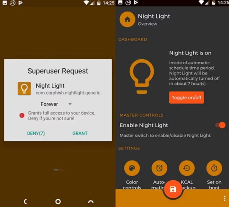 Twilight برای اکثر کاربران مناسب است، اما اگر گوشی شما روت شده باشد، می‌توانید از برنامه‌ای قدرتمندتر به نام Night Light (KCAL) استفاده کنید.