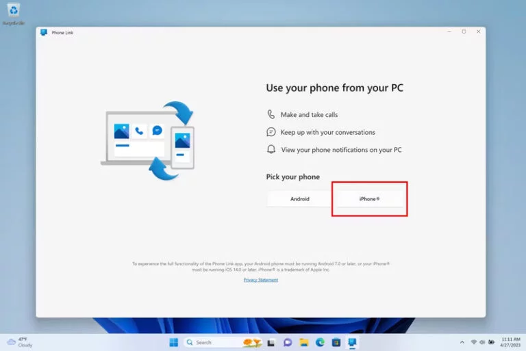 17. دستورالعملهای نمایش دادهشده در اپلیکیشن فون لینک را برای همگامسازی آیفون با ویندوز ۱۱ دنبال کنید.