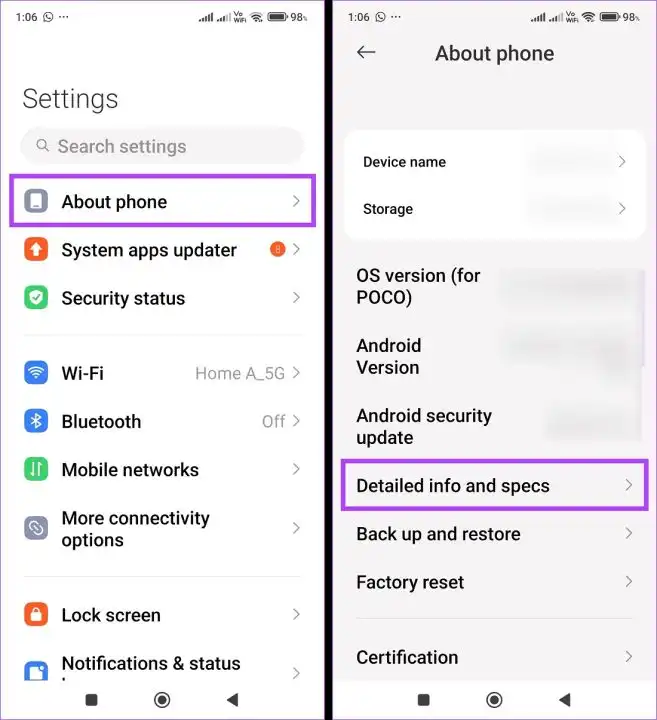 اگر از گوشی سامسونگ استفاده میکنید، شماره مدل را از برنامه تنظیمات پیدا کنید و در وبسایت سامسونگ یا گوگل جستجو کنید. این روش به شما اجازه میدهد مشخصات دقیق پردازنده را پیدا کنید. مراحل به شرح زیر است: