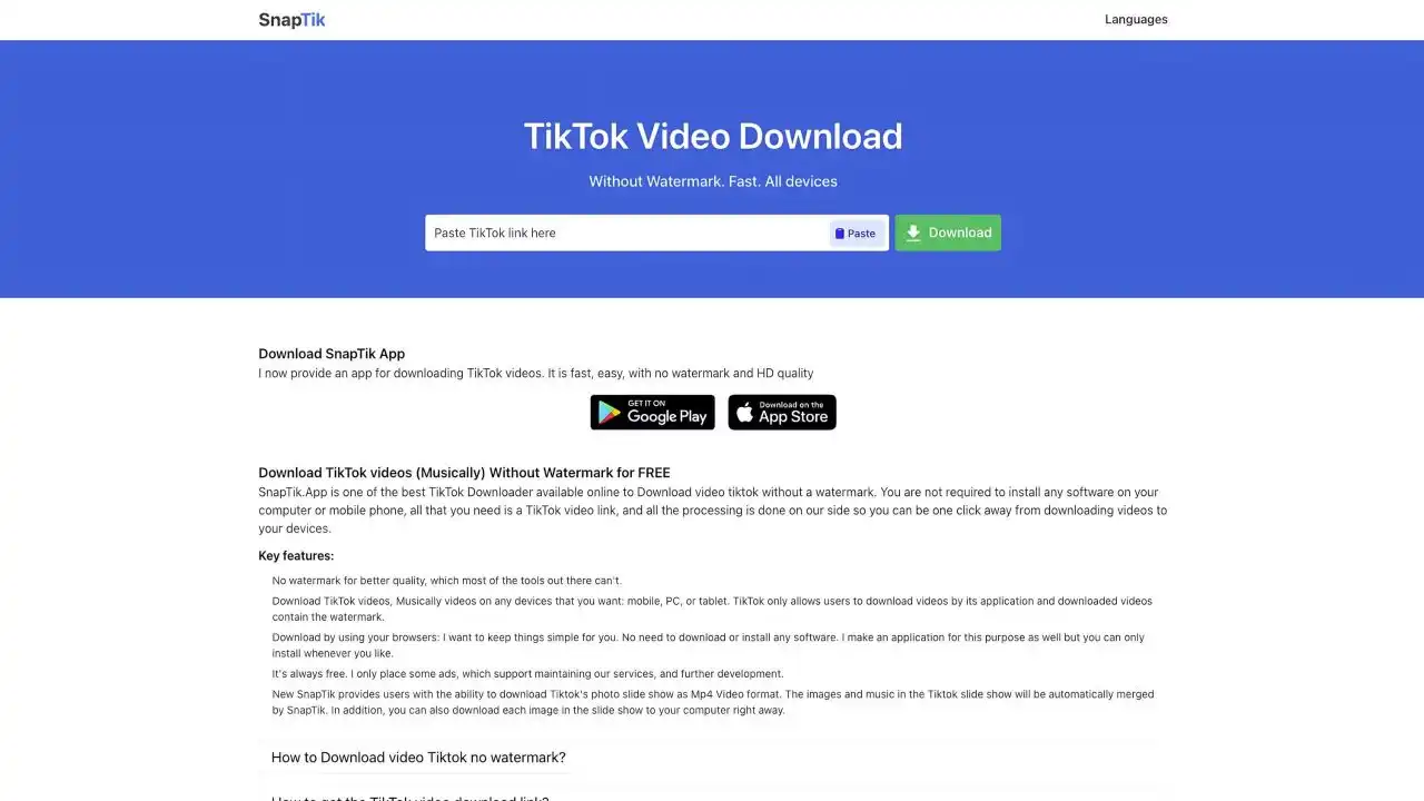 اگر نمیتوانید از طریق اپلیکیشن تیکتاک ویدیوهای دیگران را بدون واترمارک دانلود کنید، میتوانید از ابزارهای آنلاین مانند SnapTik استفاده کنید. کافی است لینک ویدیوی موردنظر را به این وبسایت بدهید.