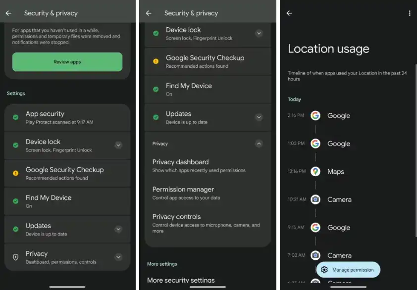 اندروید قابلیت ثبت زمان دسترسی برنامهها به موقعیت مکانی را در اختیار شما قرار میدهد. با استفاده از Privacy Dashboard میتوانید این اطلاعات را مشاهده کنید: