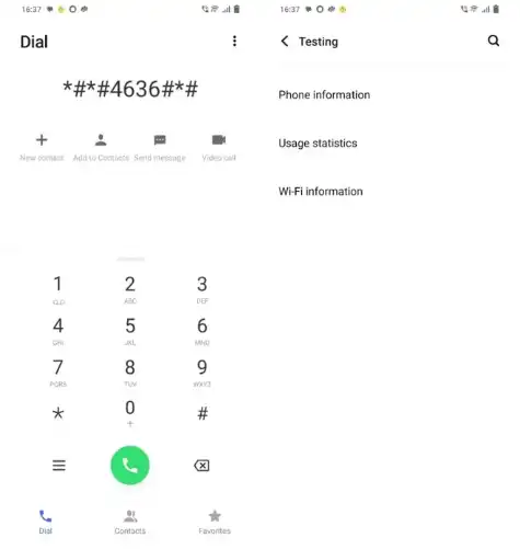 اپلیکیشن Phone را باز کرده و شماره ##۴۶۳۶## را شماره‌گیری کنید.