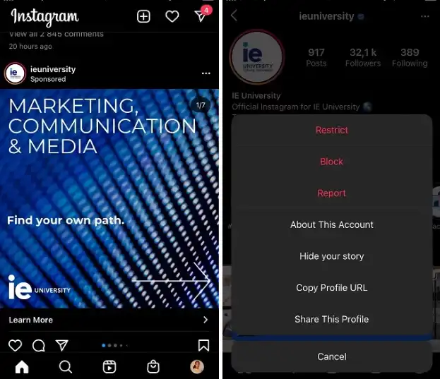 تبلیغات اینستاگرام را محدود کنید