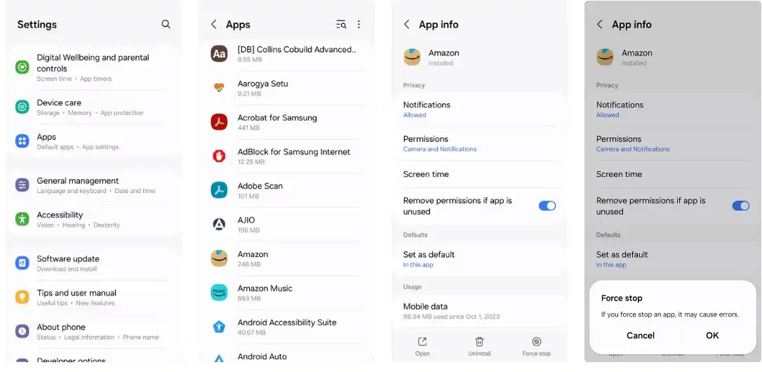 مرحله سوم: روی گزینه Force stop ضربه بزنید.