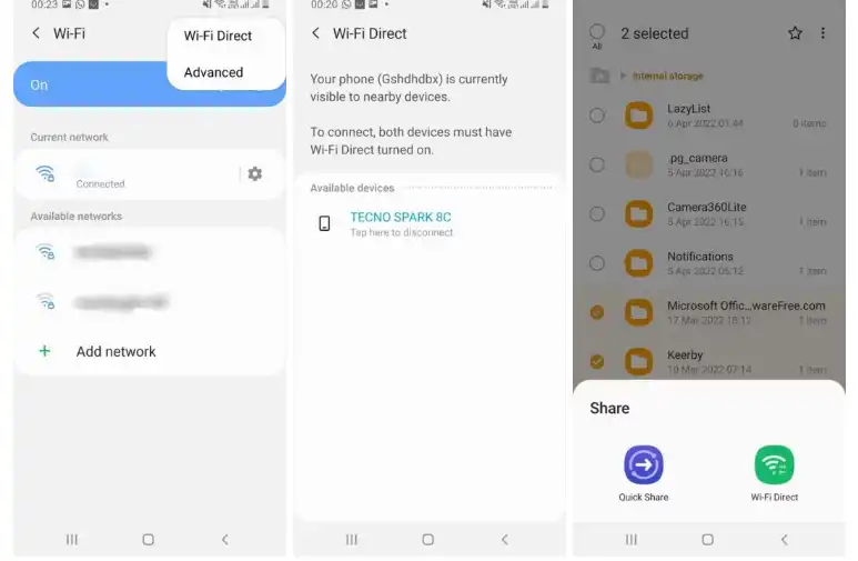 برای انتقال فایلهای حجیم، وایفای دایرکت یک روش سریع و کارآمد است. این قابلیت از طریق Settings > Wi-Fi > Wi-Fi Direct فعال میشود. در گوشی سامسونگ، مسیر Settings > Connections > Wi-Fi و سپس انتخاب وایفای دایرکت را دنبال کنید.