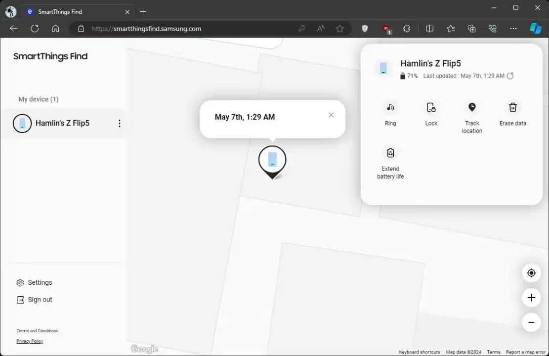 - SmartThings Find آخرین مکان شناخته شده گوشی را به شما نشان می‌دهد.