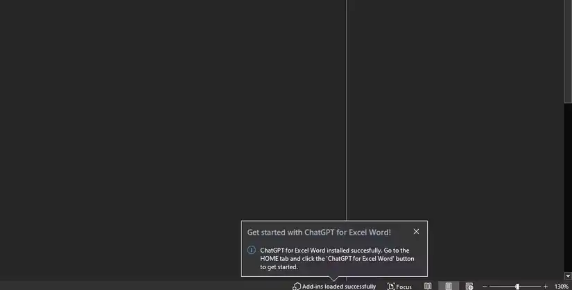 4. پس از تأیید موفقیتآمیز، میتوانید از قابلیتهای ChatGPT در ورد استفاده کنید.