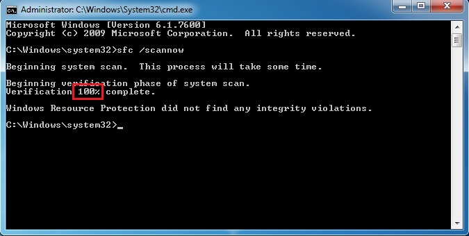 در صفحه باز شده عبارت sfc/scannow را تایپ کنید. این دستور معادل Repaire می باشد. بگذارید تا مراحل انجام کار تکمیل شود. (تا 100 درصد)