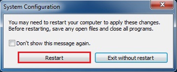 روی دکمه Restart کلیک کنید.