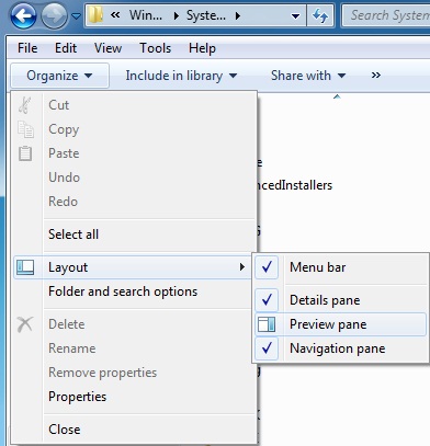 My Computer را باز کنید، از منوی Organize و زیر گزینه Layout ، تیک گزینه Preview pane را بردارید.