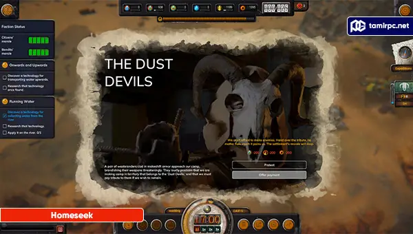 در این داستان، جمعیت جهان به سرعت در حال افزایش است، و بیتوجهی به محیط زیست و تخریب منابع طبیعی منجر به کمبود منابع آبی و فروپاشی تمدن انسانی شده است. شما به عنوان یک بازمانده از این آخرالزمانی، وظیفه دارید تا گروهی از بازماندگان را هدایت کرده و شهرکهای جدیدی را بنا نهاده و مدیریت کنید. اما در جهانی که آب به طلای جدید تبدیل شده و هر تصمیم میتواند تفاوتی بین زندگی و مرگ ایجاد کند، این کار تنها با تصمیمگیریهای دقیق و استراتژیهای مناسب امکانپذیر است. Homeseek با داستانی گیرا و محیطی متنوع به بازیکنان امکان میدهد تا به عنوان رهبران گروهی از بازماندگان، شهرکها و ساختمانهای مختلف را طراحی و اداره کنند. شما باید تصمیمهای استراتژیکی درباره موقعیت ساختمانها، تخصیص منابع، بهبود دانش و ماشینآلات شهرکنشینان و مدیریت امور مختلف شهرکها اتخاذ کنید. از طرفی، بازی دارای دو کمپین جذاب با بیش از 9 سناریو متنوع است که از طریق حالت داستانی، حالت بیپایان و حالت بقا ارائه میشود و تجربهای طولانی و پرطراوت را به بازیکنان ارائه میدهد.