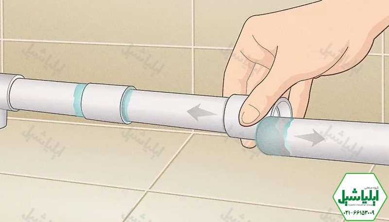 6. استفاده از حلال PVC و چسب برای اتصال : یک لایه حلال PVC روی یکی از انتهای لوله های قدیمی بمالید و سپس لایه ای از چسب PVC روی آن بزنید. سپس، اتصال را روی لوله قرار دهید و به مدت 15 ثانیه آن را نگه دارید تا چسب محکم شود.