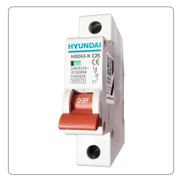 | 25A | C (کندکار) | تجهیزات گرمایشی/تهویهای سنگین | کلید مینیاتوری تک پل 25 آمپر تیپ C هیوندای |